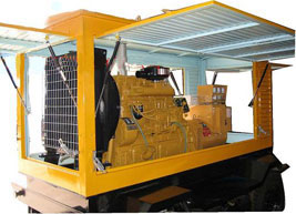 斗门柴油发电机组/移动柴油发电机组设计独具创新,机动性高、重心低、制动安全、制造精良、外形美观。 斗门拖车车架采用槽梁焊接成框架结构,节点选择合理、强度高、刚性好;同时装有钢板弹簧悬架结构;拖车采用高度可调节插销式牵引架,适用于各种高度牵引车;采用圆形钢管焊接直通式车轴,结构紧凑,安全可靠;车架四角设有机械式支撑装置,配备惯性行车制动、驻车制动和脱离应急制动,确保机组在各种状况下的安全;车架前端设有支撑轮,具备承受机组垂直载荷的功能的同时还具备导向功能;整车配备转向和刹车指示灯,同时装有尾灯标准插头